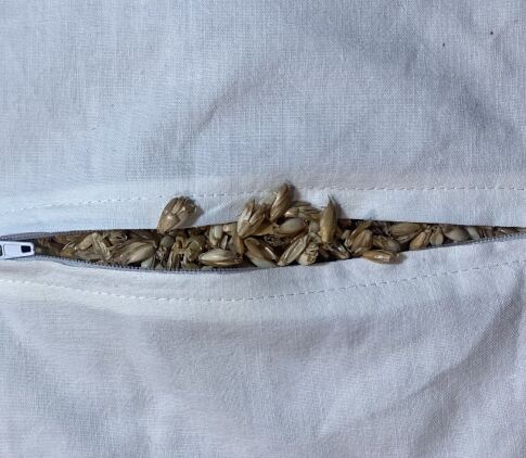 . Relleno de cáscara de Espelta ecológica dentro de un saco interior con una cremallera por si quieres sacar o meter más cáscara y una funda exterior con una abertura en uno de los laterales, por donde podrás sacar para lavar.