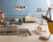 Bolsa para zafú bicolor con asas grises y flores blancas