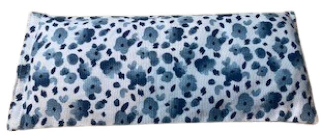 Saco térmico blanco-florecitas 34x14cm relleno de semillas y lavanda, actúa como analgésico y antiinflamatorio natural.