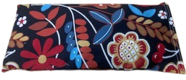 Saco térmico negro-flores de 34x14cm, relleno de semillas y lavanda, actúa como analgésico y antiinflamatorio natural.